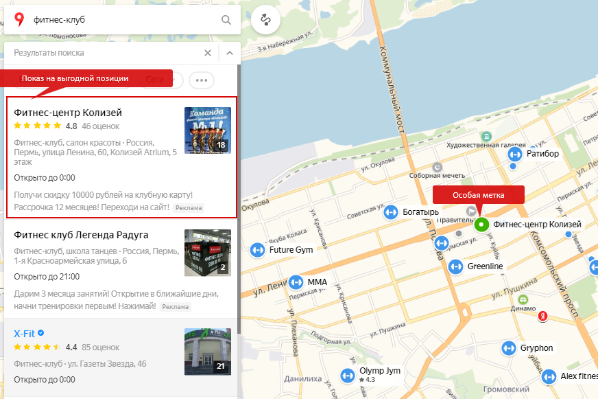 - Ключевые слова – включите в описание и категорию фразы, которые используют пользователи при поиске (например, «аптека в центре»).